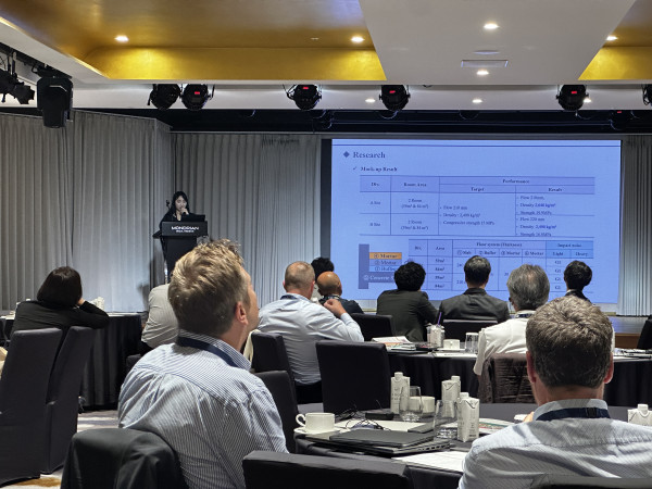 첫 번째 세션은 ‘저탄소와 재활용’을 주제로, 자원 절감과 탄소 저감 전략을 중심으로 구성되었다. 글로벌 기업 ‘IMERYS’는 유럽 중심의 드라이믹스 모르타르 원료 및 지속가능 광물 활용 방안을 제시하며 단기적 비용보다는 장기적인 탄소 저감 효과에 주목해야 할 필요가 있음을 강조했다. 또한 드라이믹스 모르타르의 국제 적용 사례와 향후 시장 전망에 대한 활발한 논의가 이어졌다.